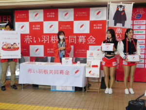 10月18日(土)熊本県立体育館にて開催されたプロバスケットボールチーム、熊本ヴォルターズのホームゲーム会場にて、赤い羽根共同募金ブースを出店し、募金活動を実施しました。