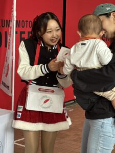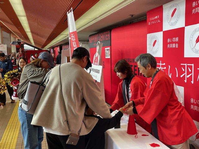 当日は「熊本ヴォルターズ×赤い羽根共同募金」のコラボステッカーを来場者の皆さまへ配布し、多くの方から温かいご協力をいただきました。