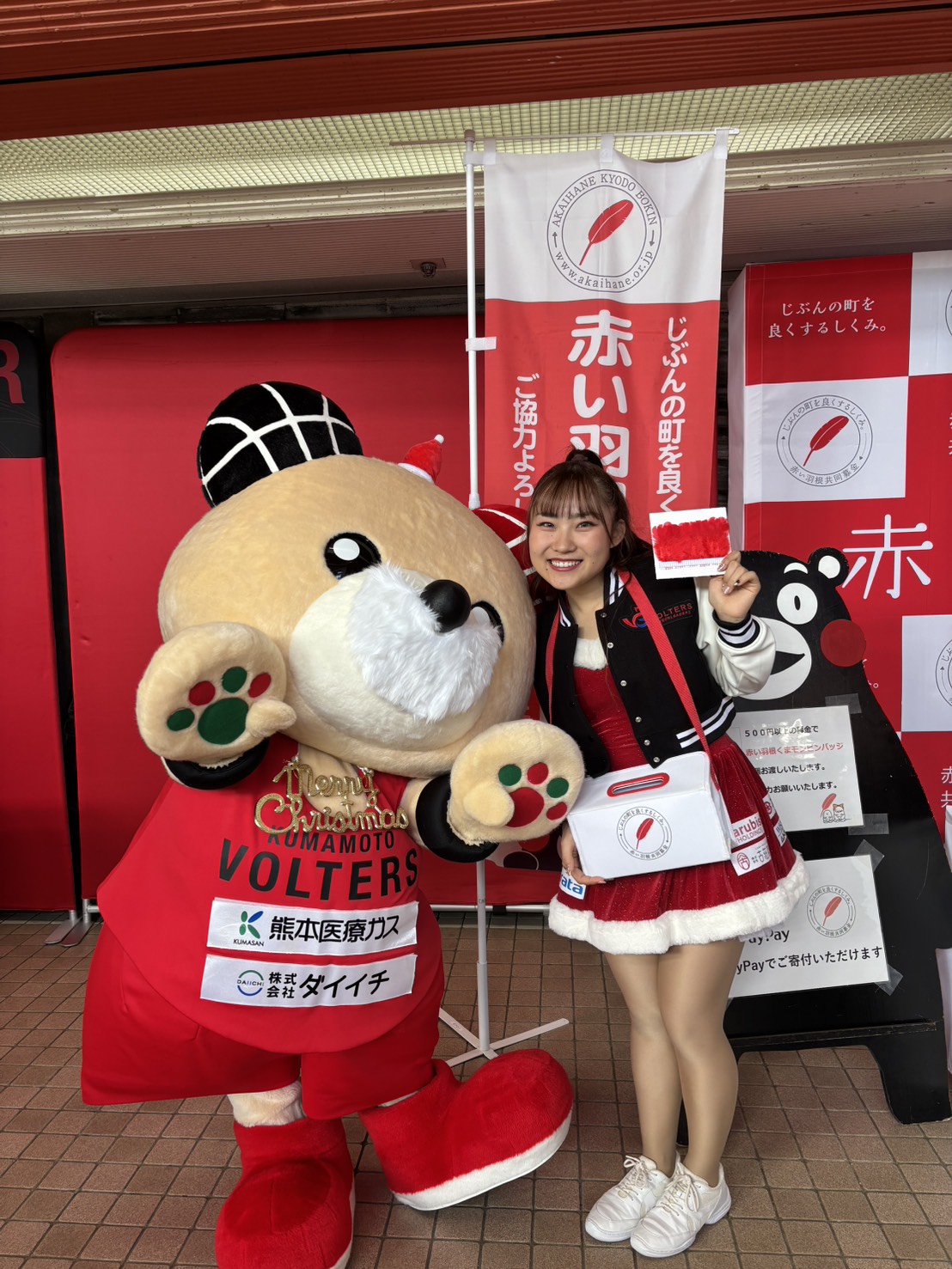 12月20日(土)・21日(日)の2日間、熊本県立総合体育館で開催された熊本ヴォルターズ様のホームゲーム会場にて、赤い羽根イベント募金を実施いたしました。