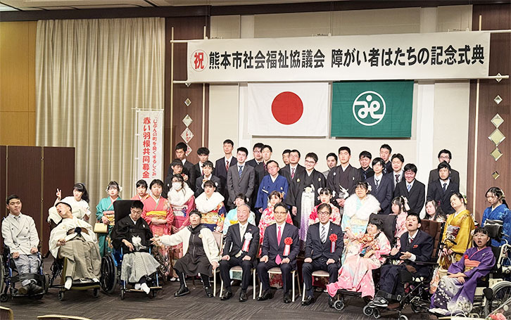 地域福祉活動について熊本市にお住まいの障がいのある方を対象に昭和56年から 毎年、1月の成人の日に併せて、福祉団体や企業・団体からの ご協力をいただき、式典を開催しています。
